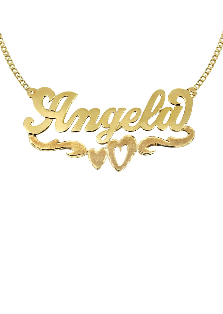 14K Gold Diamond Cut Heart Name Plate Necklace | Style #38