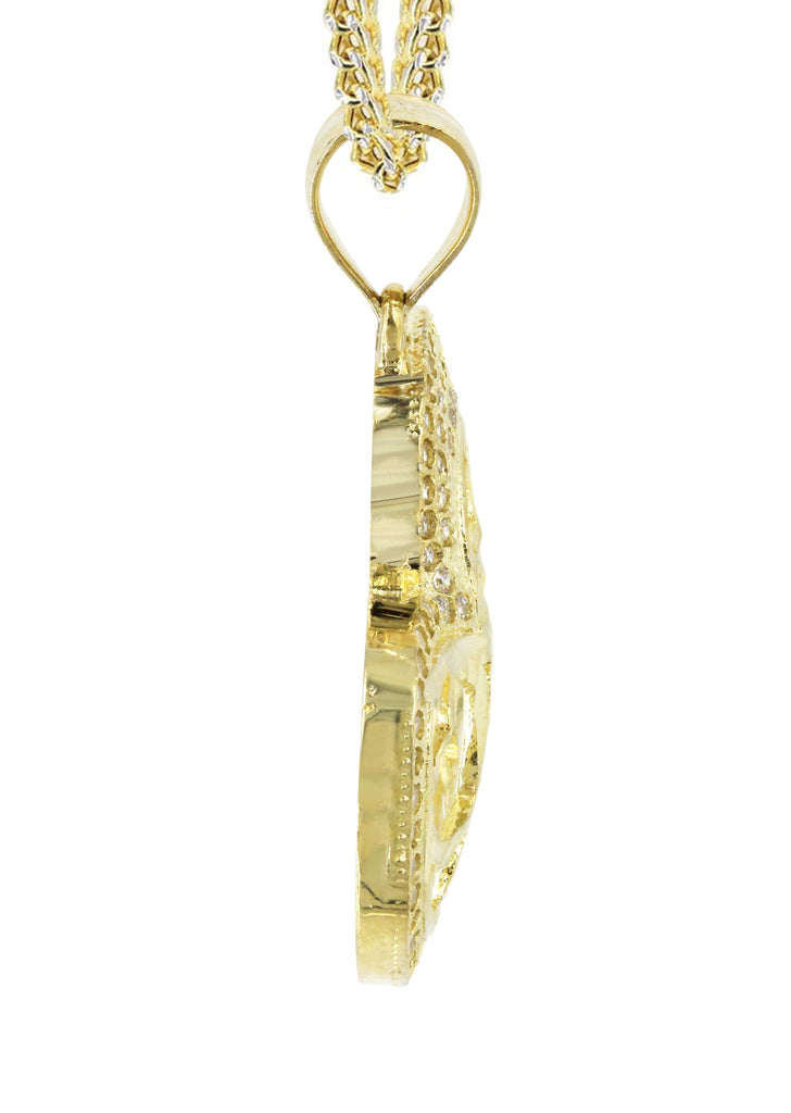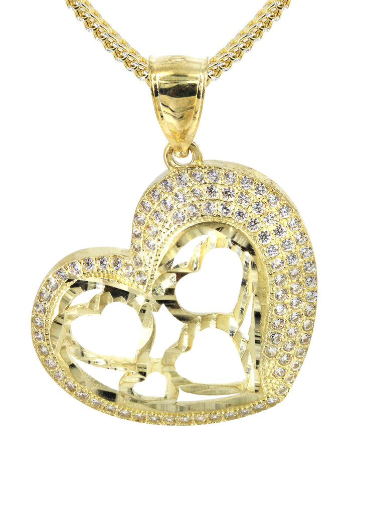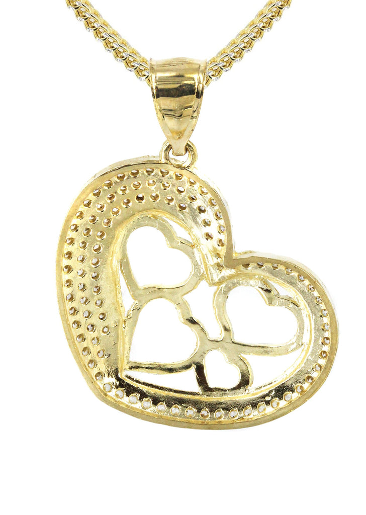 Franco Chain And Heart Pendant With An Approximate Total Gram Weight Of 15. Pendant Weighs 5 Grams And The Chain Weighs 10 Grams. The Pendant Measurement Is  1.1 Inches In Width And A Length Of 1.3 Inches. The Width Of The Chain Is  3 Mm And The Length Of The Chain Can Be Adjusted.