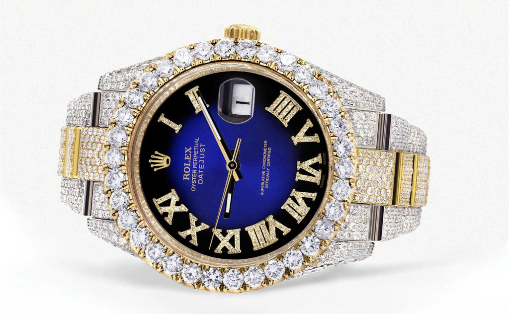 Diamond Iced Out Rolex Datejust 41 | 25 Carats Of Diamonds | Custom Blue Black Roman Numeral Diamond Dial | Two Tone | Oyster Band
