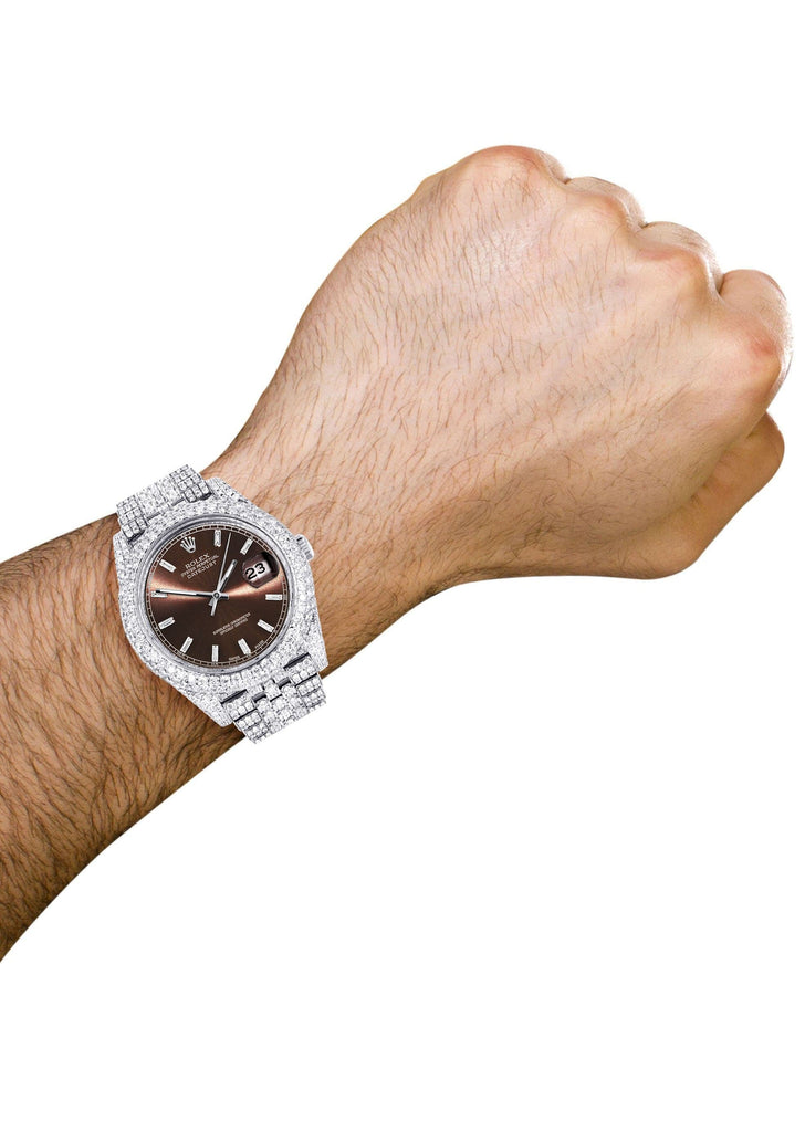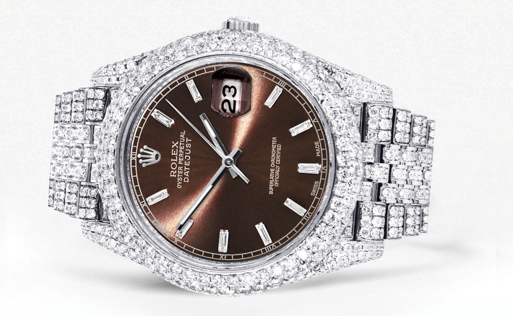 Diamond Iced Out Rolex Datejust 41 | 25 Carats Of Diamonds | Morocco Brown Diamond Dial | Two Row | Jubilee Band