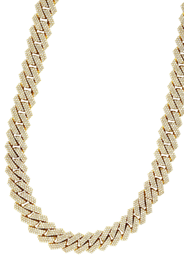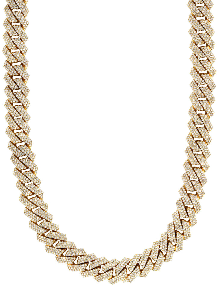 14K Iced Out Diamond Miami Cuban Link Chain 17 Mm width. You can pick the length of your chain above. Once you selected your length, you can see the adjusted gram weight above the price. The quality of the diamonds are VS Clarity and G/H Color.