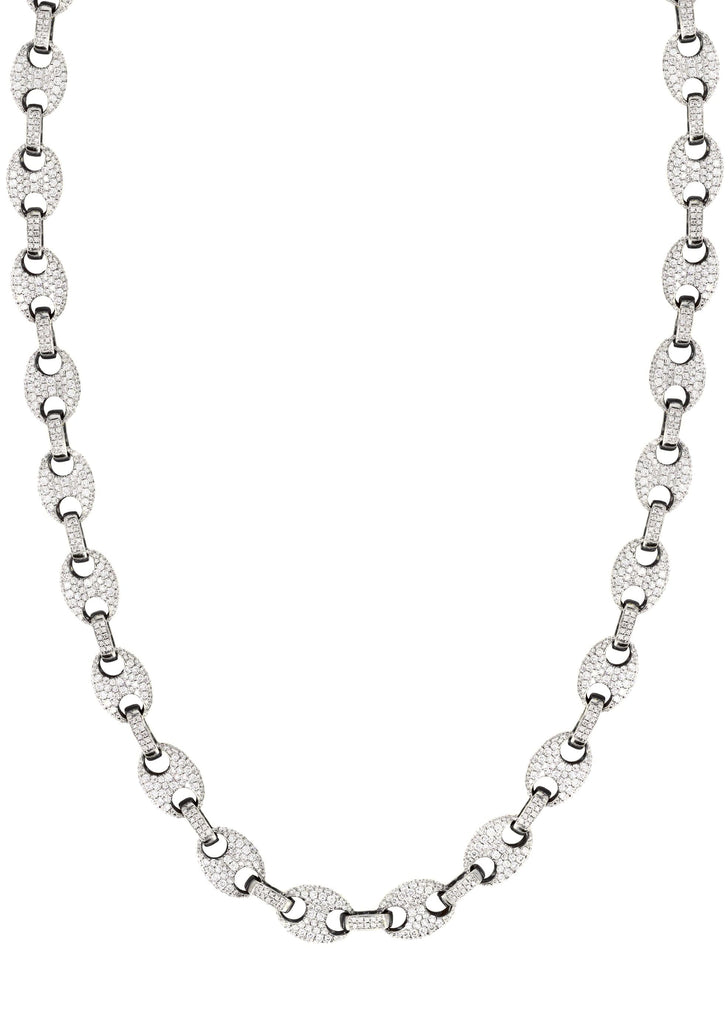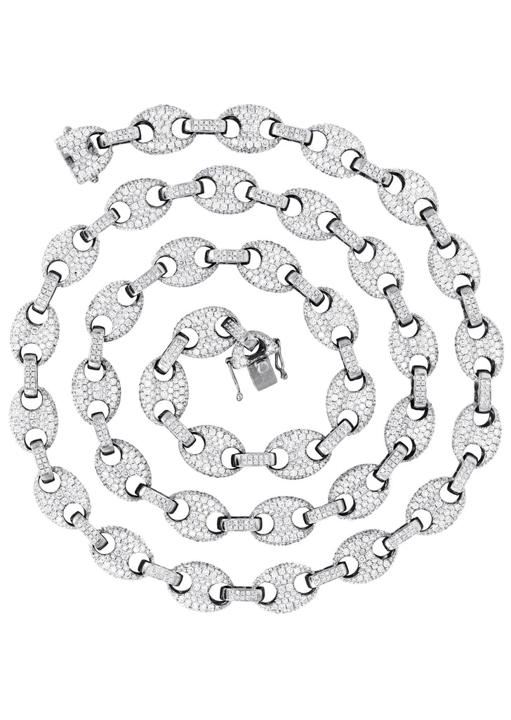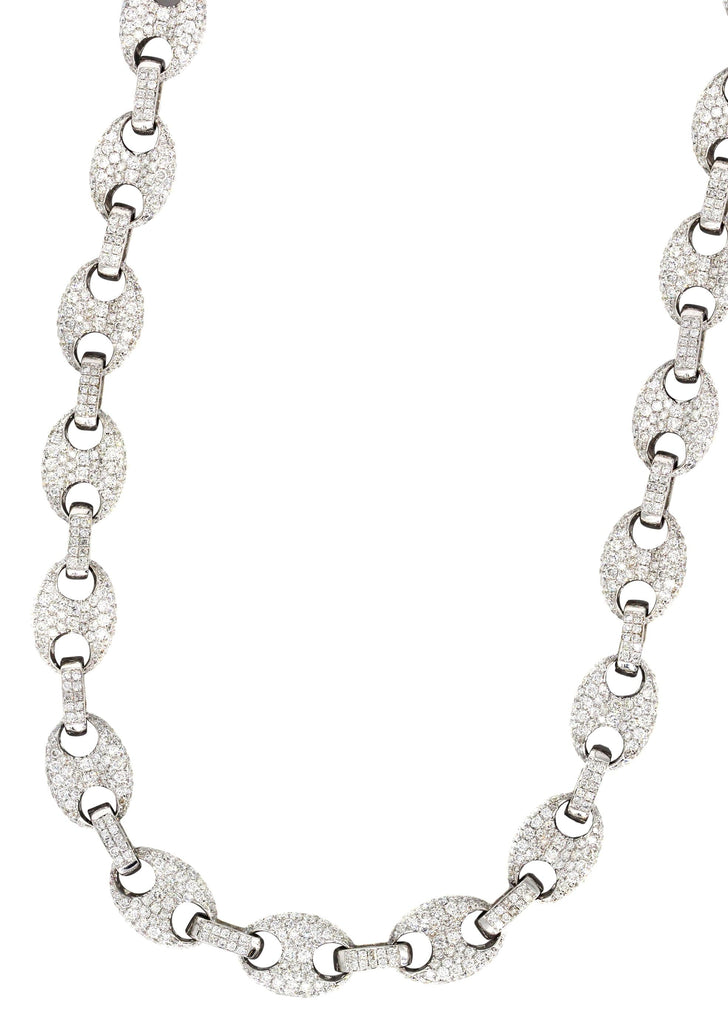 14K Iced Out White Diamond Puff Gucci Chain. You can pick your length above. Once you selected your length, you can see the adjusted gram weight above the price. The quality of the diamonds are VS Clarity and G/H Color.