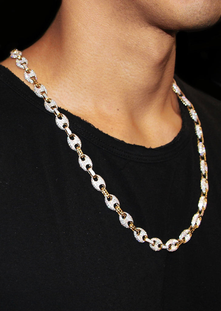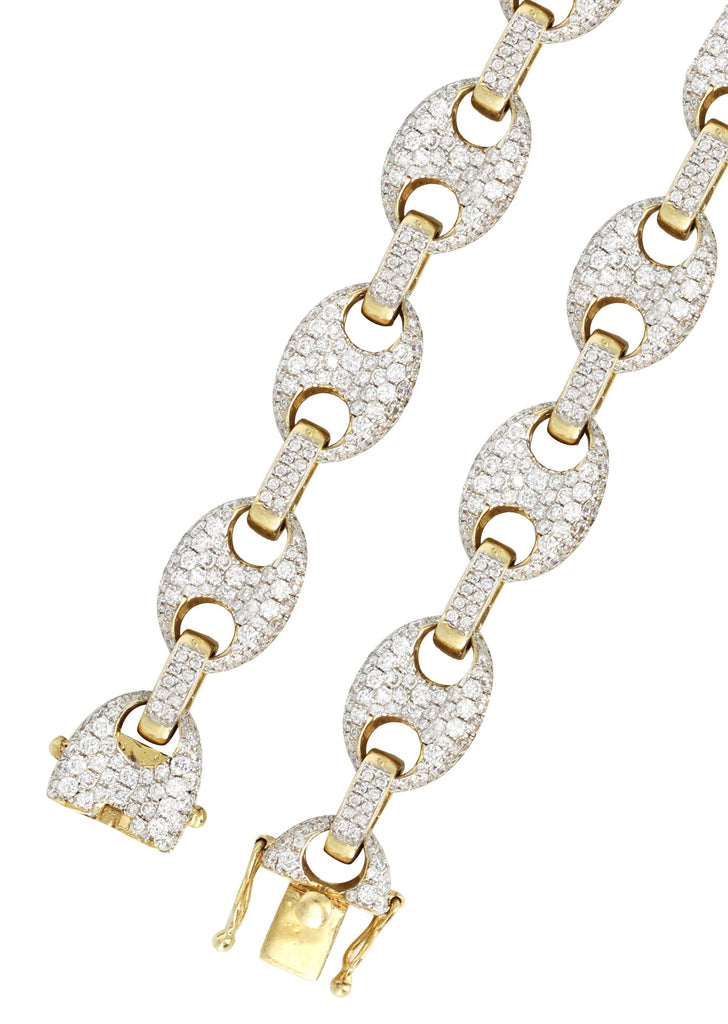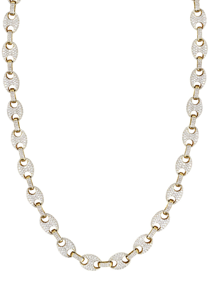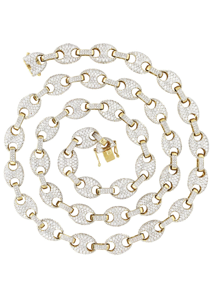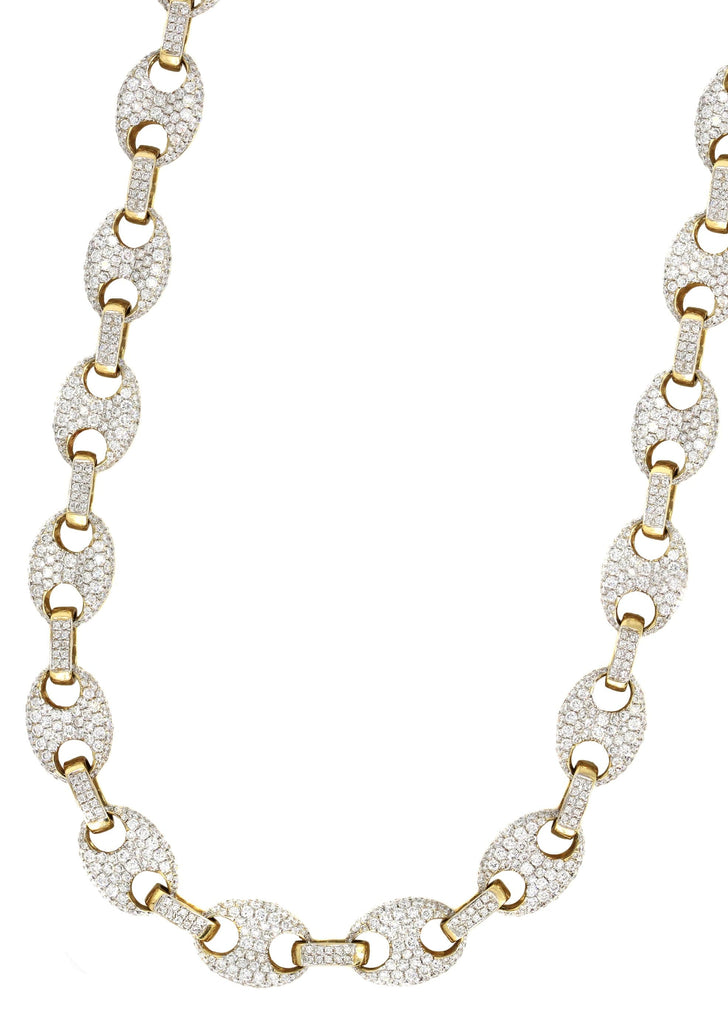 14K Iced Out Yellow Diamond Puff Gucci Chain. You can pick your length above. Once you selected your length, you can see the adjusted gram weight above the price. The quality of the diamonds are VS Clarity and G/H Color.