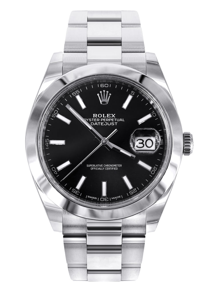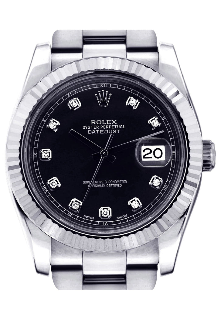 ROLEX DATEJUST 2 41 MM | STEEL WATCH | OYSTER BAND | BLACK DIAMOND DIAL | 18K FLUTED BEZEL