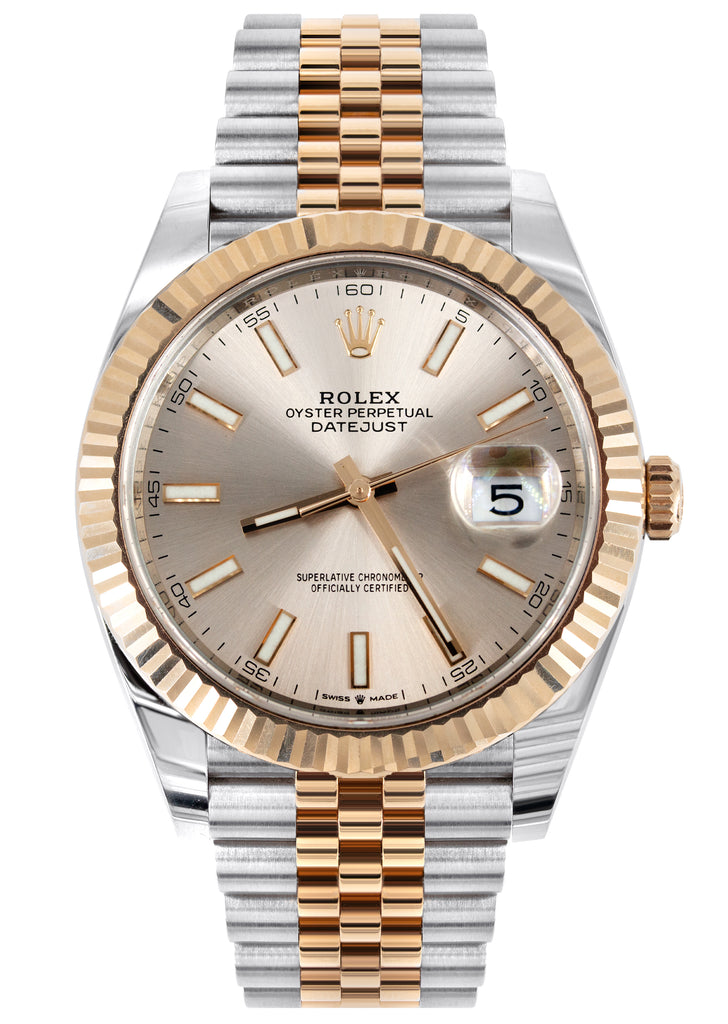 ROLEX DATEJUST 41 MM | 18K ROSE GOLD & STEEL WATCH | JUBILEE BAND | SUNDUST INDEX