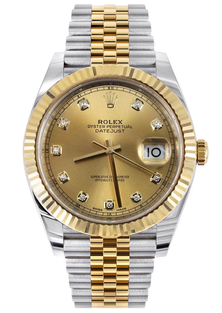 ROLEX DATEJUST 41 MM | 18K YELLOW GOLD & STEEL WATCH | JUBILEE BAND | DIAMOND CHAMPAGNE DIAL