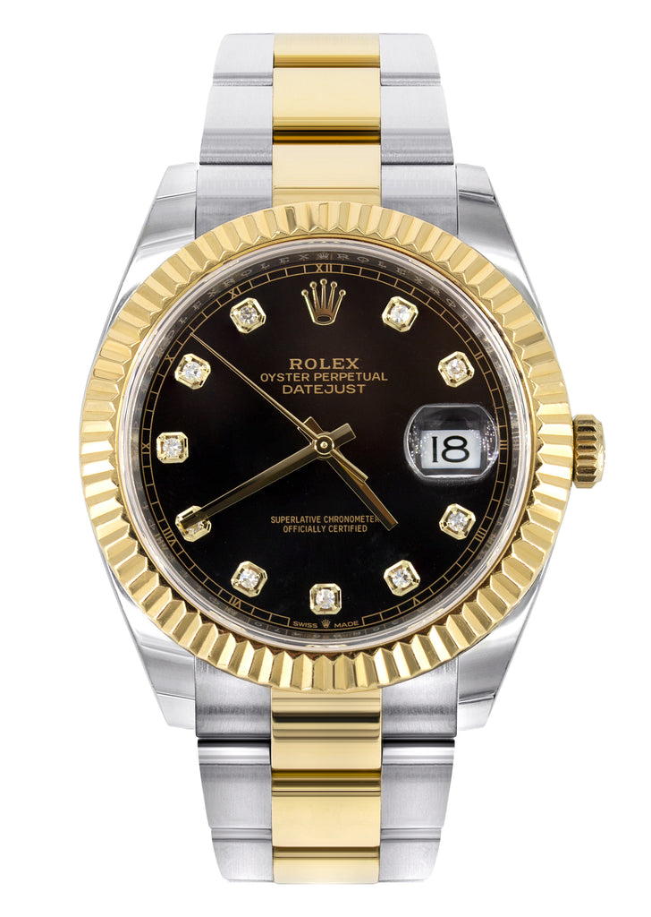 ROLEX DATEJUST 41 MM | 18K YELLOW GOLD & STEEL WATCH | OYSTER BAND | DIAMOND BLACK DIAL