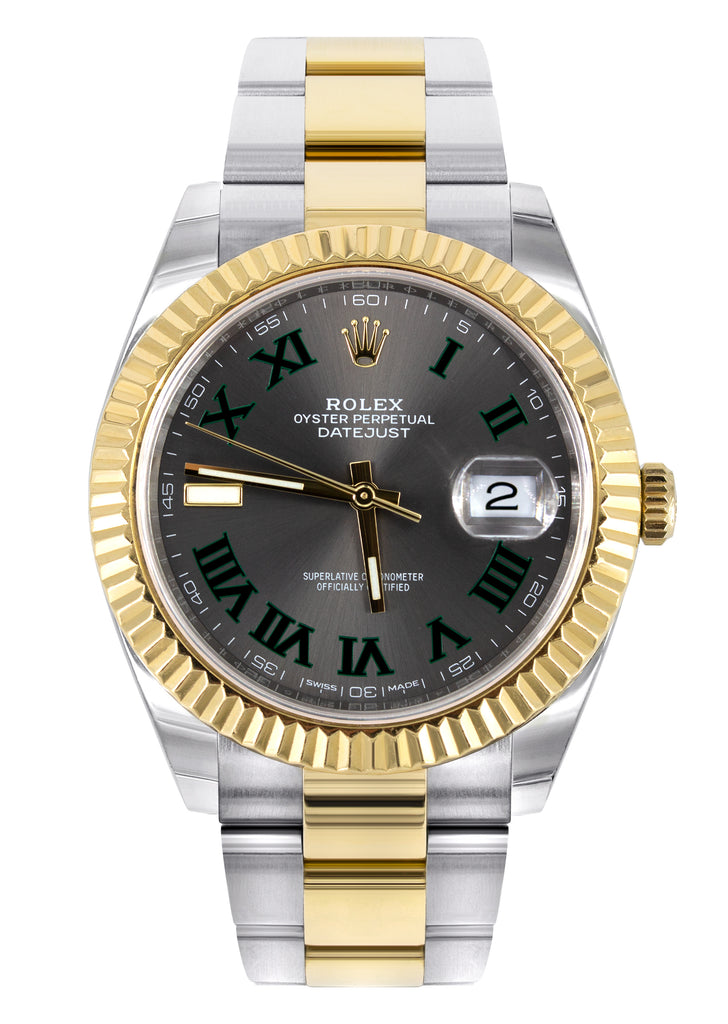 ROLEX DATEJUST 41 MM | 18K YELLOW GOLD & STEEL WATCH | JUBILEE BAND | SLATE WIMBLEDON DIAL