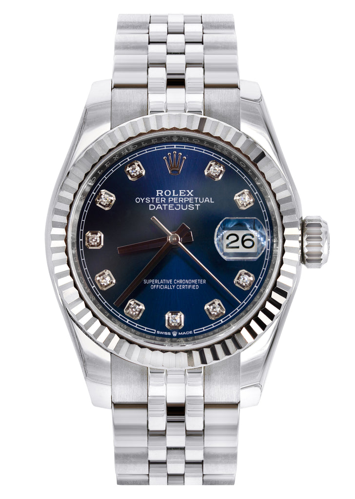 ROLEX DATEJUST 36 MM | JUBILEE BAND STEEL WATCH | 126234 | 18K FLUTED BEZEL | FACTORY DIAMOND BLUE