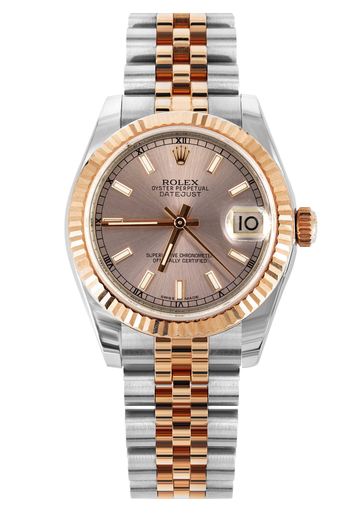 ROLEX DATEJUST 31 MM | OYSTER BAND 18K GOLD & STEEL WATCH | 178241 | 18K ROSE GOLD SMOOTH | WHITE ROMAN