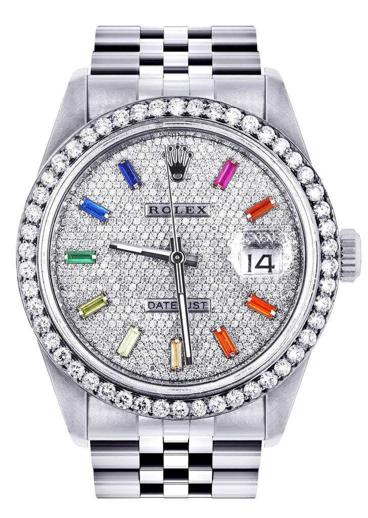 Diamond Mens Rolex Datejust Watch 16200 | 36MM | Full Diamond Color Arabic Dial | Jubilee Band