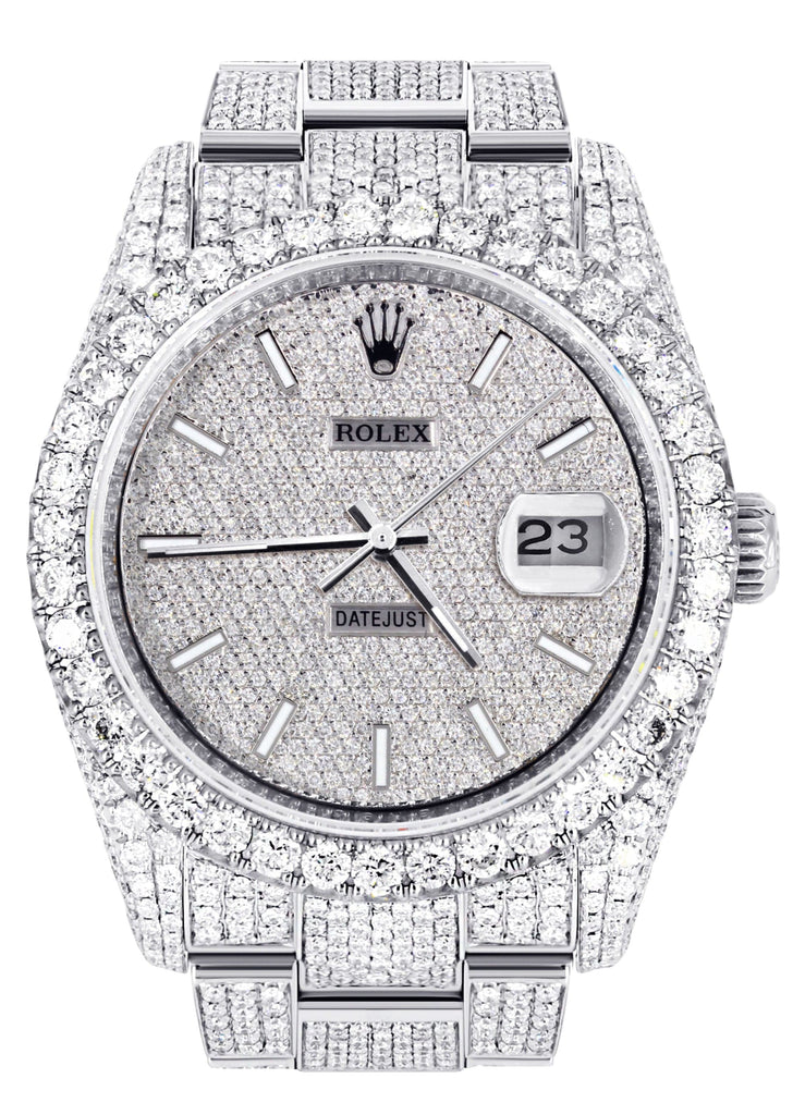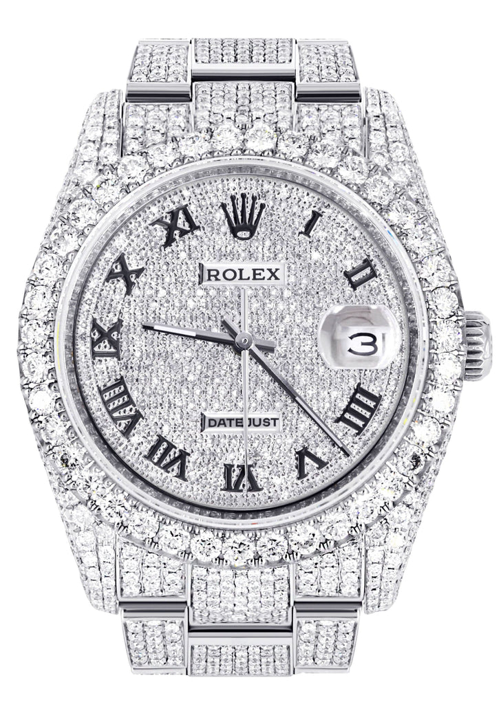 Diamond Iced Out Rolex Datejust 41 | 25 Carats Of Diamonds | Custom Full Diamond Roman Dial | Jubilee Band