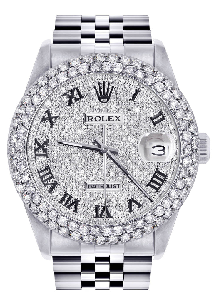 Mens Rolex Datejust Watch 16200 | 36Mm | Full Diamond Roman Numeral Dial | Two Row 4.25 Carat Bezel | Jubilee Band