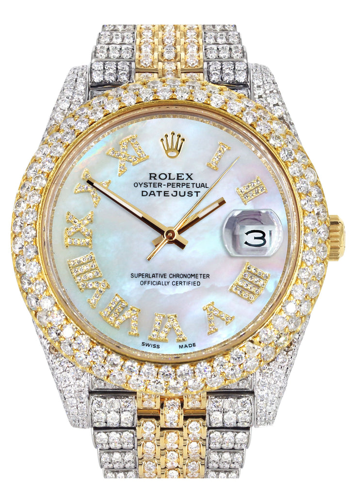 Iced Out Rolex Datejust 36 MM | Two Tone | 10 Carats of Diamonds | Full Diamond Gold Roman Diamond Dial