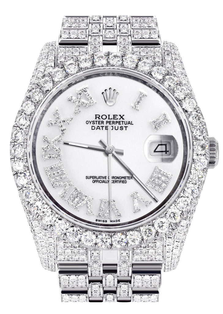 Iced Out Rolex Datejust 36 MM | Stainless Steel | 16.5 Carats of Diamonds | White Roman Diamond Dial | Jubilee Band | Model 116200