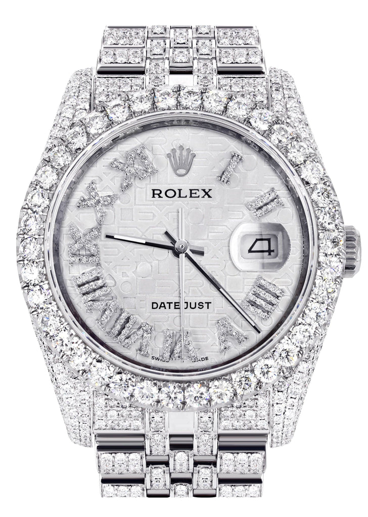Iced Out Rolex Datejust 36 MM | Stainless Steel | 16.5 Carats of Diamonds | Full Diamond Color Roman Diamond Dial | Jubilee Band