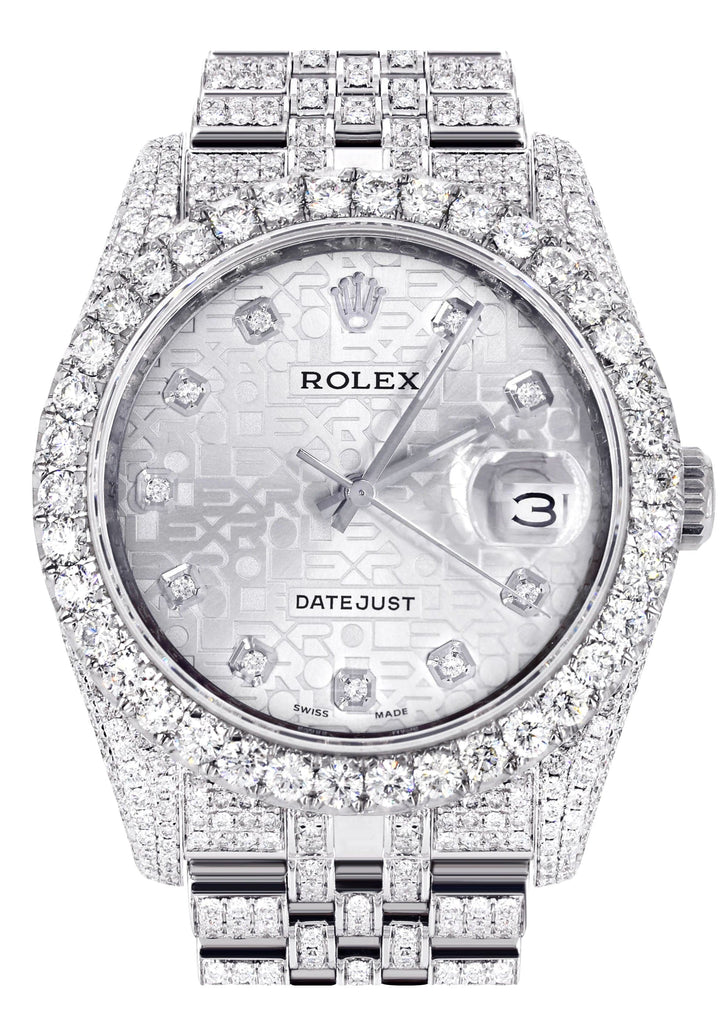 Iced Out Rolex Datejust 36 MM | Stainless Steel | 16.5 Carats of Diamonds | Silver Texture Diamond Dial | Jubilee Band | Model 116200