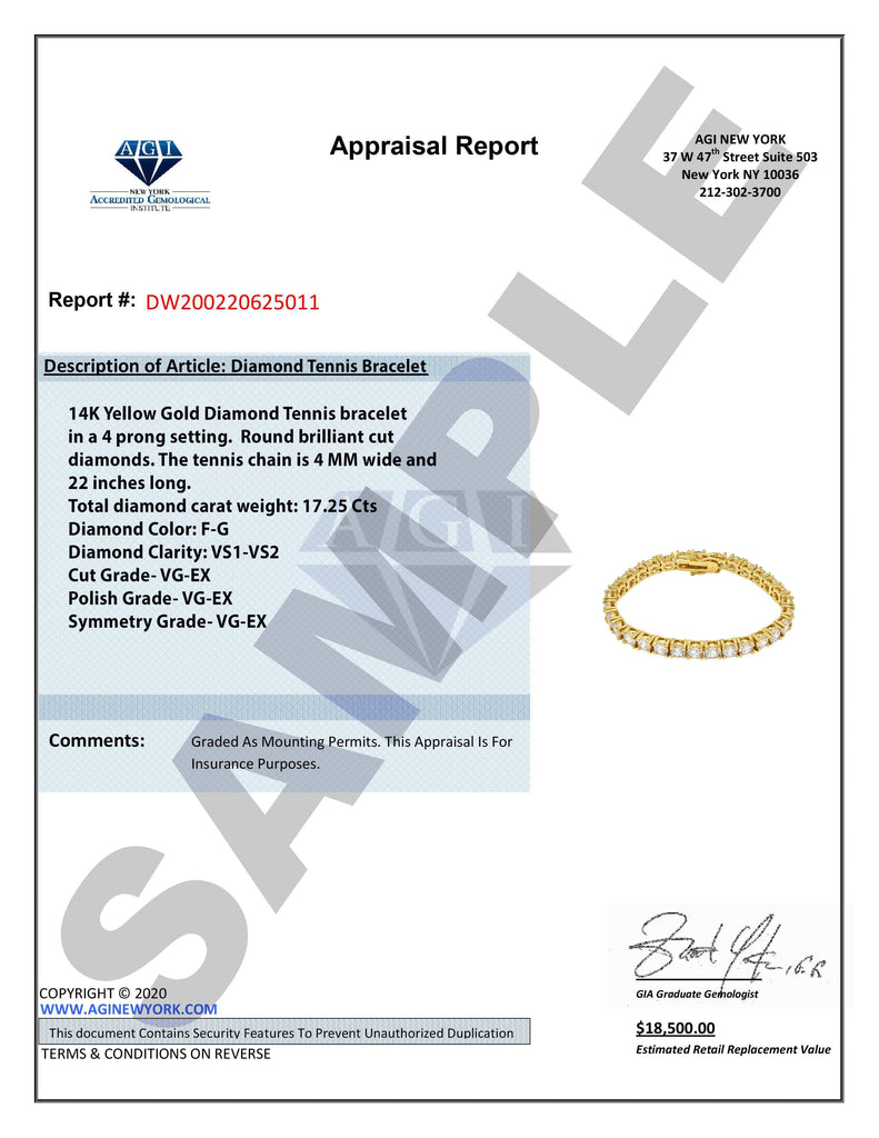 Yes, all orders over $500 will be provided with an appraisal upon request which can also be used to obtain insurance from an insurance company.