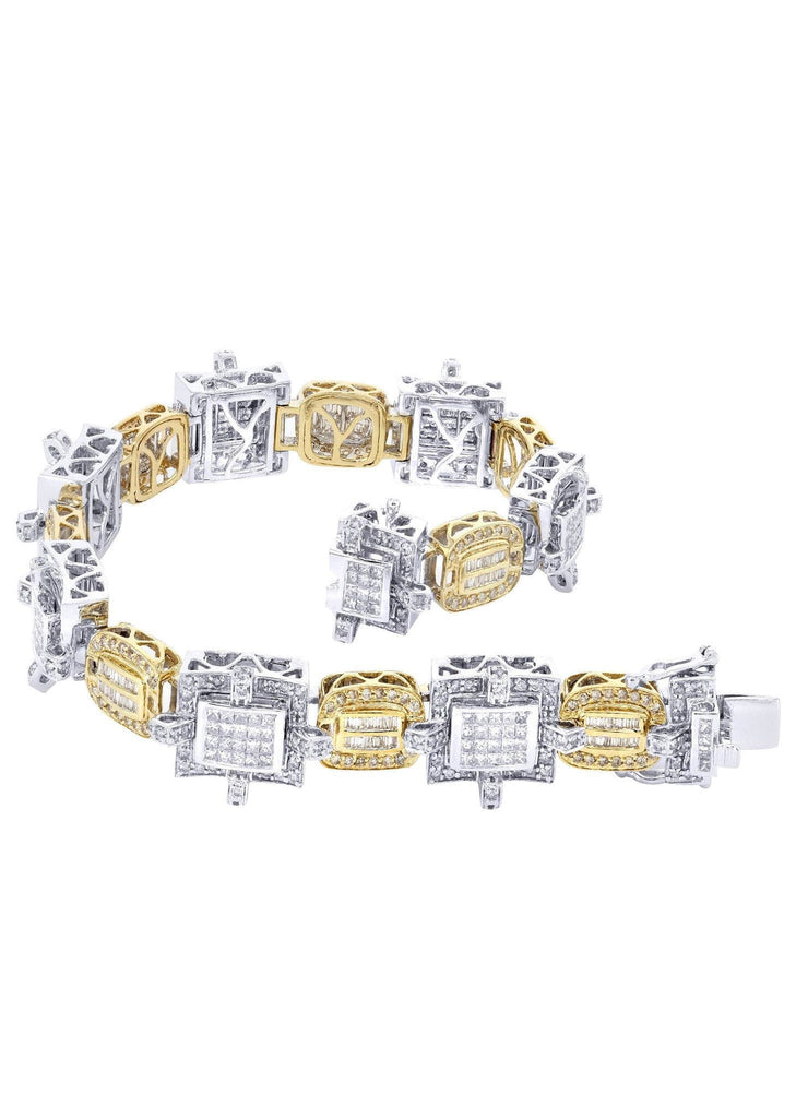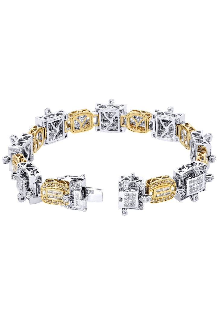 14K Yellow Gold Mens Diamond Bracelet With Approximately 6.22 Carats Of Diamonds And 49.02 Grams .This Hand Made Bracelet Comes In 8.5 Inches But Can Be Adjusted To Any Size Upon Request.