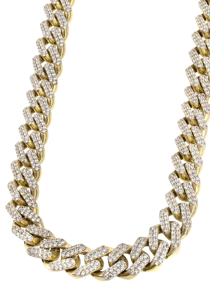 Iced Out Diamond Prong Cuban Link Yellow Gold Chain 10K/14K