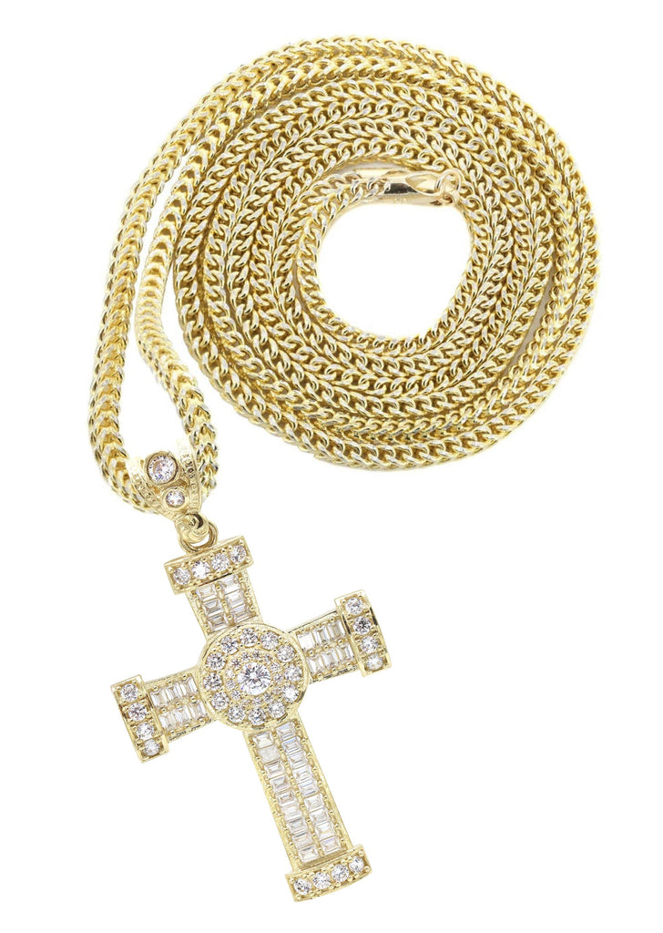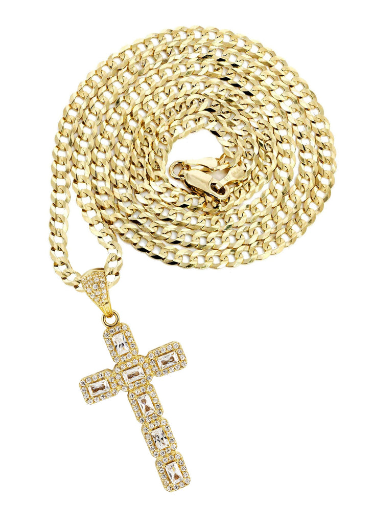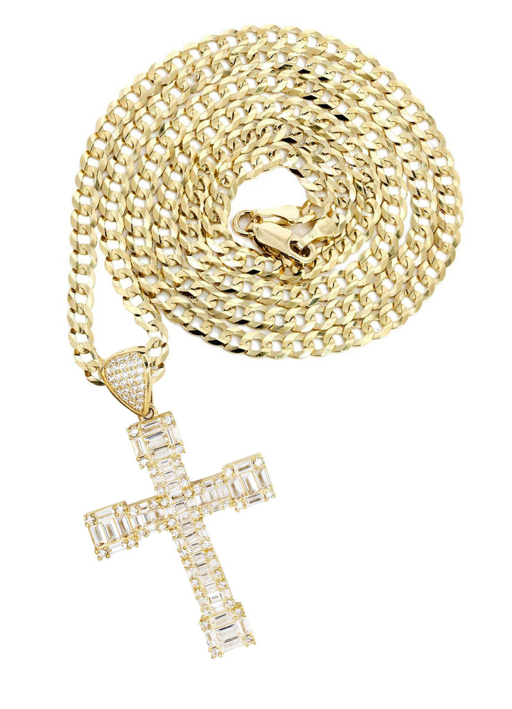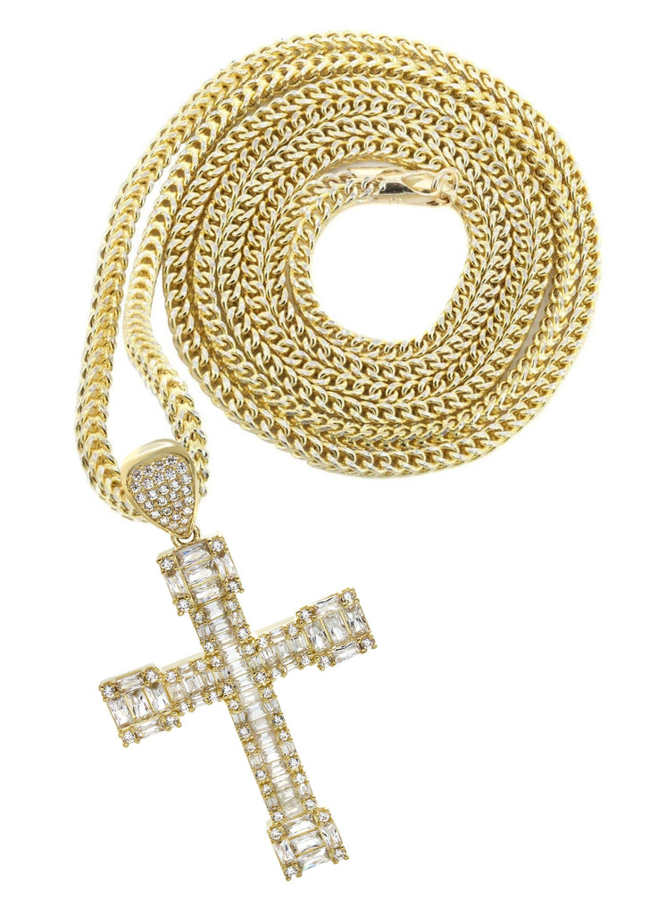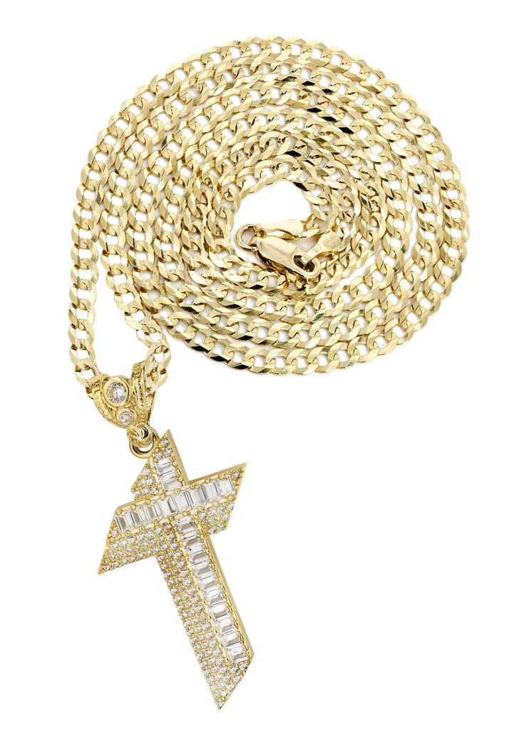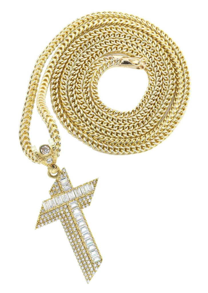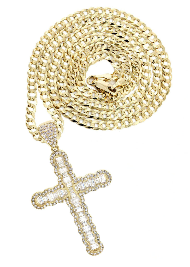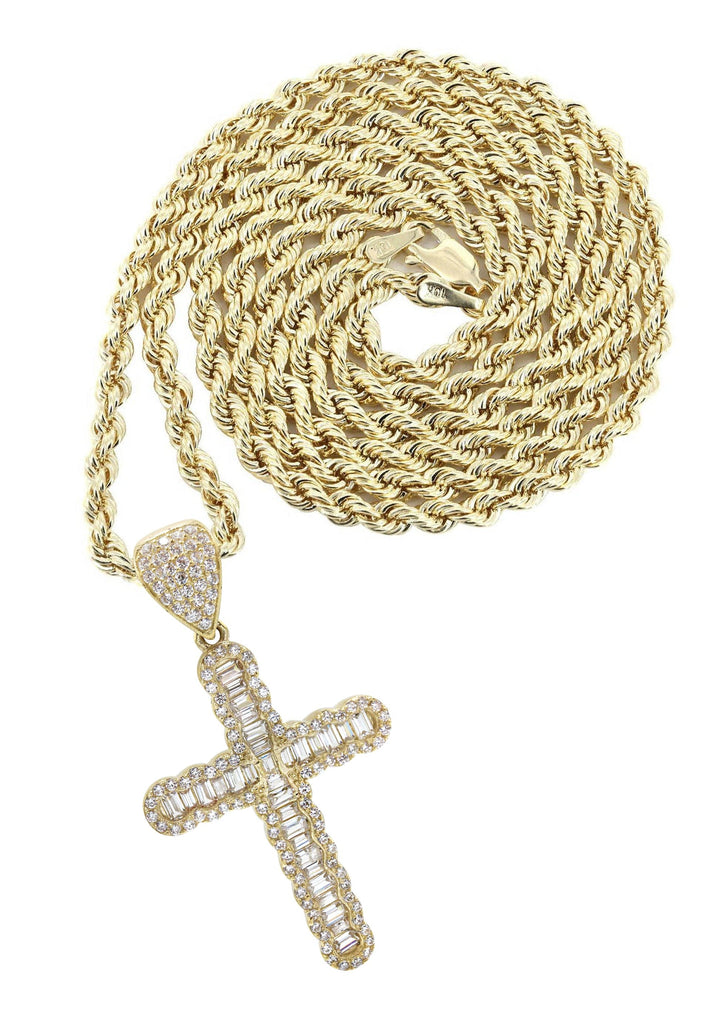 10K Yellow Gold Baguette Cross Necklace | Appx. 15 Grams