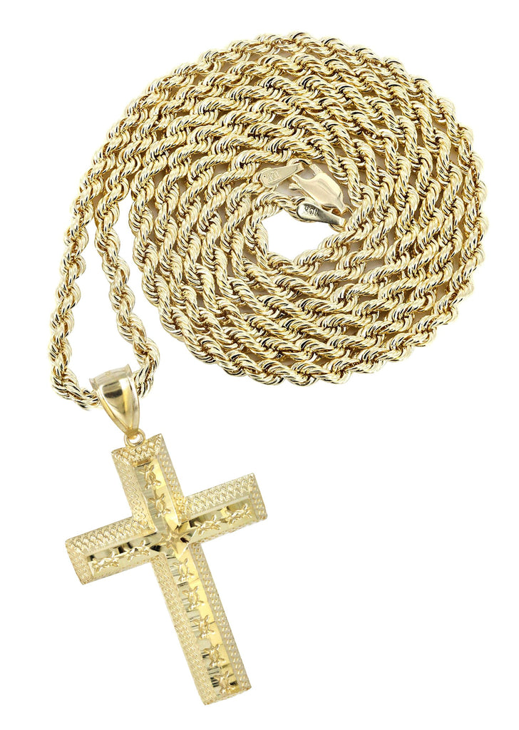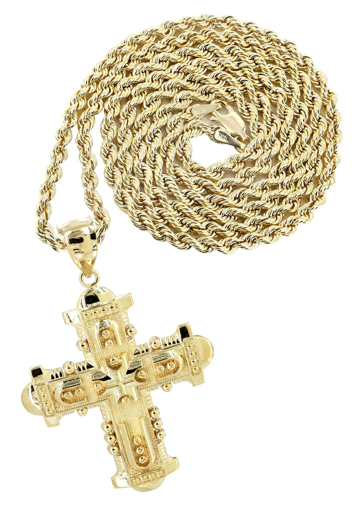10K Yellow Gold Cross Necklace | Small 15 Grams - Large 46 Grams