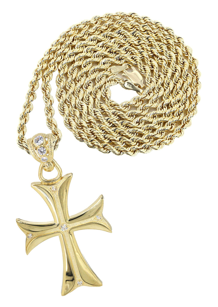 10K Yellow Gold Cross Necklace | Small 15 Grams - Large 46 Grams