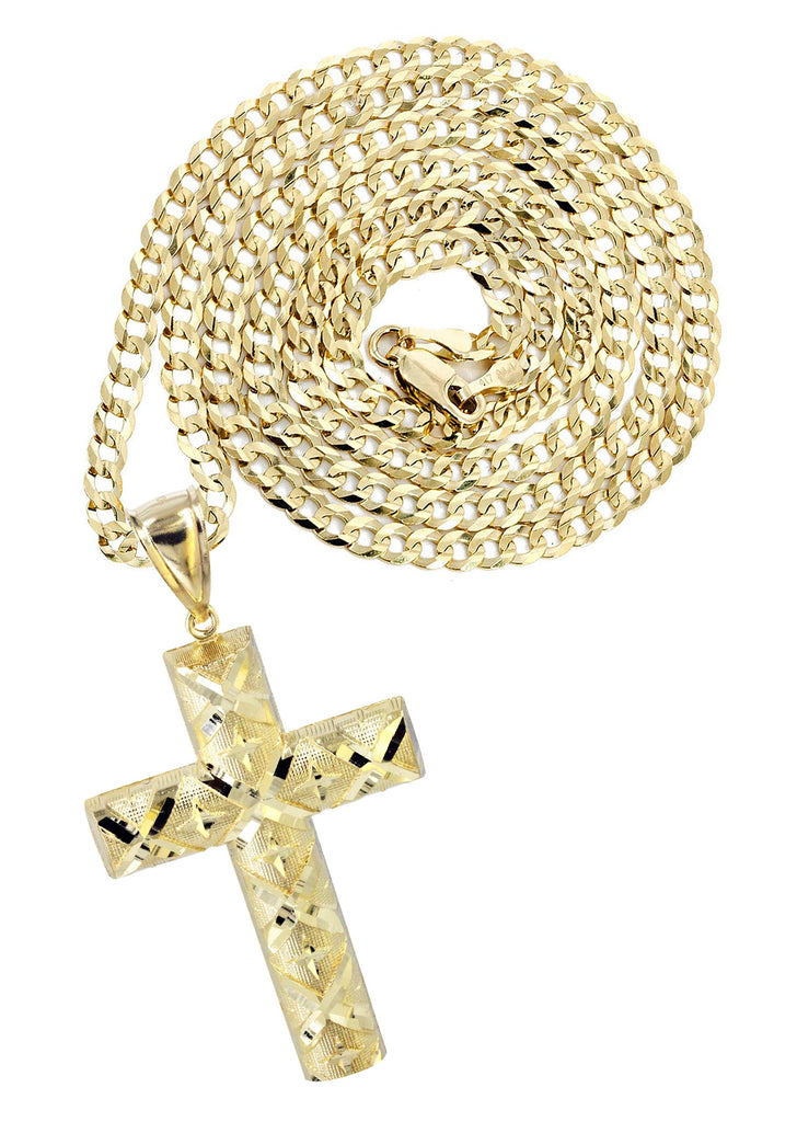 10K Yellow Gold Cross Necklace | Small 10 Grams - Large 28 Grams