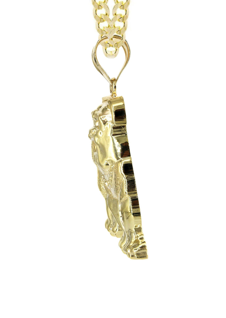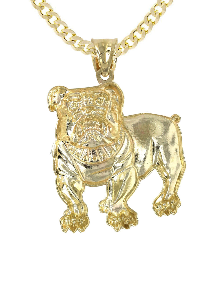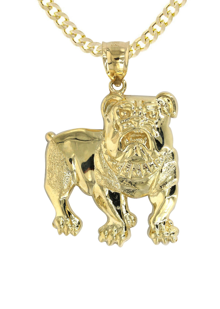 Cuban Chain And Dog Pendant With An Approximate Total Gram Weight Of 17.2. Pendant Weighs 7.2 Grams And The Chain Weighs 10 Grams. The Pendant Measurement Is 1.2 inches In Width And A Length Of 1.8 inches. The Width Of The Chain Is 3 Mm And The Length Of The Chain Can Be Adjusted.<