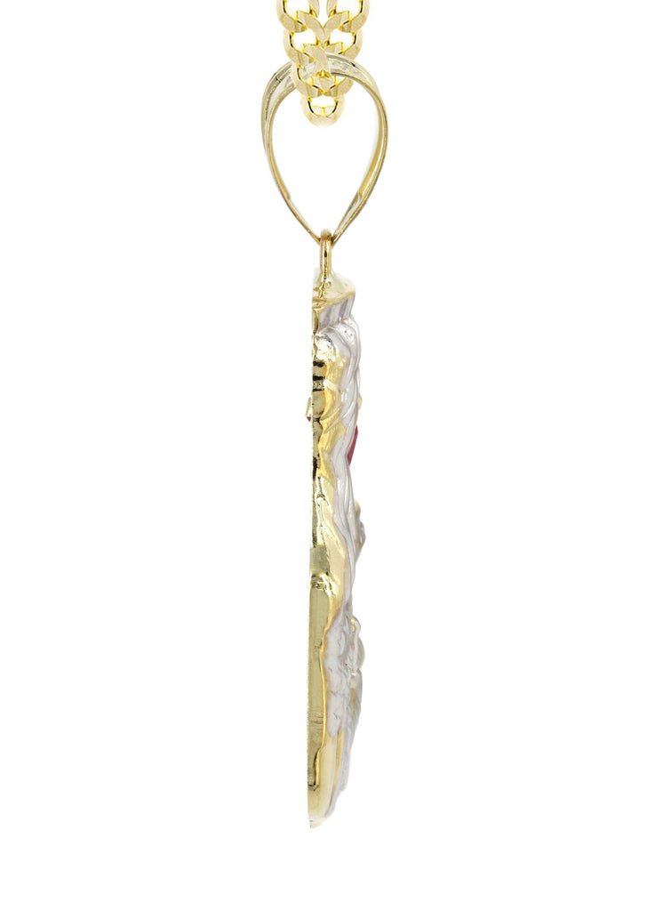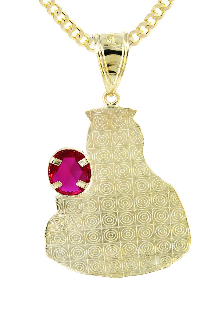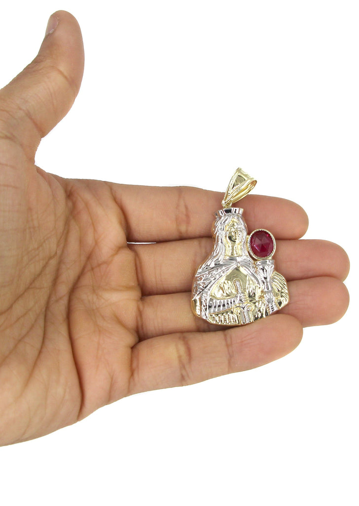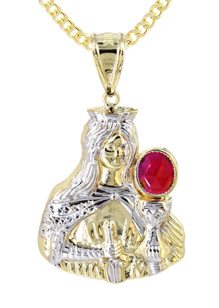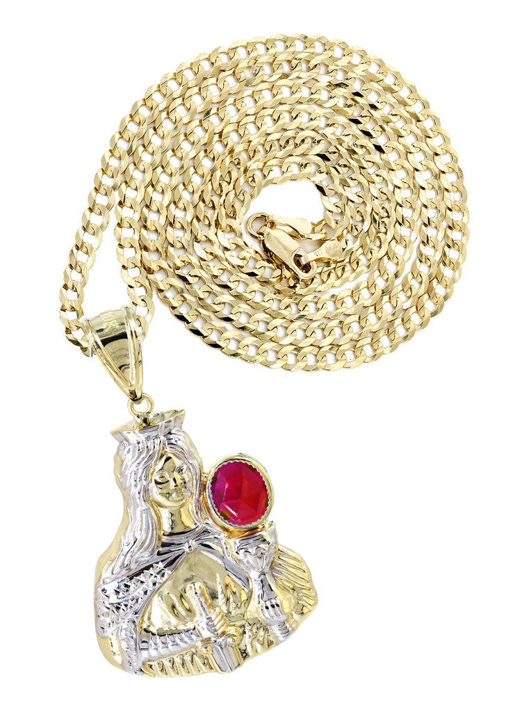 10K Yellow Gold Saint Barbara Necklace with Ruby Stone | Appx. 16.6 Grams