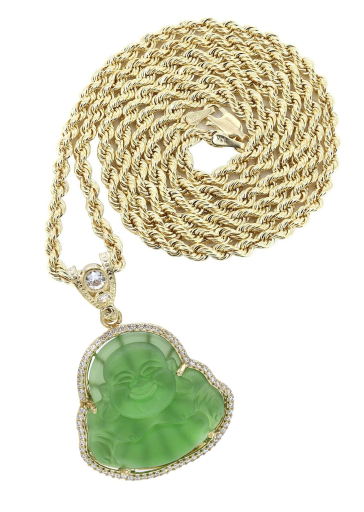 10K Yellow Gold Green Buddha Necklace | Appx. 21.6 Grams