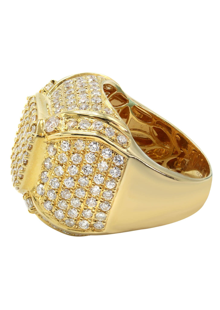 14K Yellow Gold Mens Diamond Ring With Approximately 4.38 Carats Of Diamond And 17.28 Grams. This Hand Made Ring Comes In Size 7 But Can Be Adjusted To Any Size.
