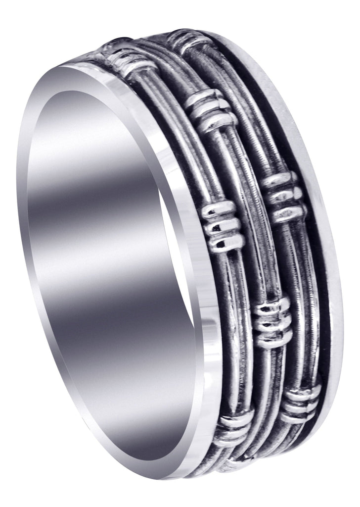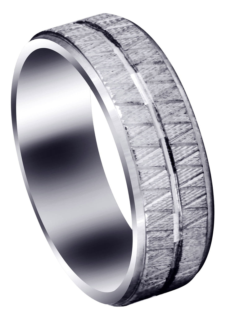 Carved Diamond Cut Mens Wedding Band | Satin Finish (Juan)