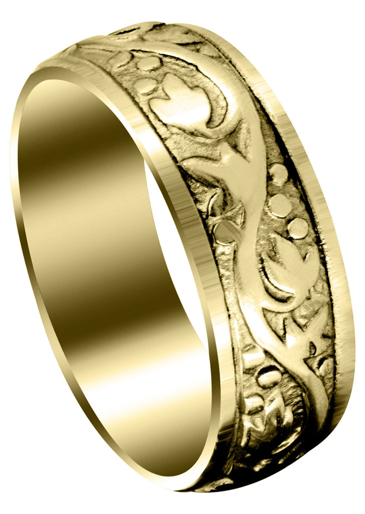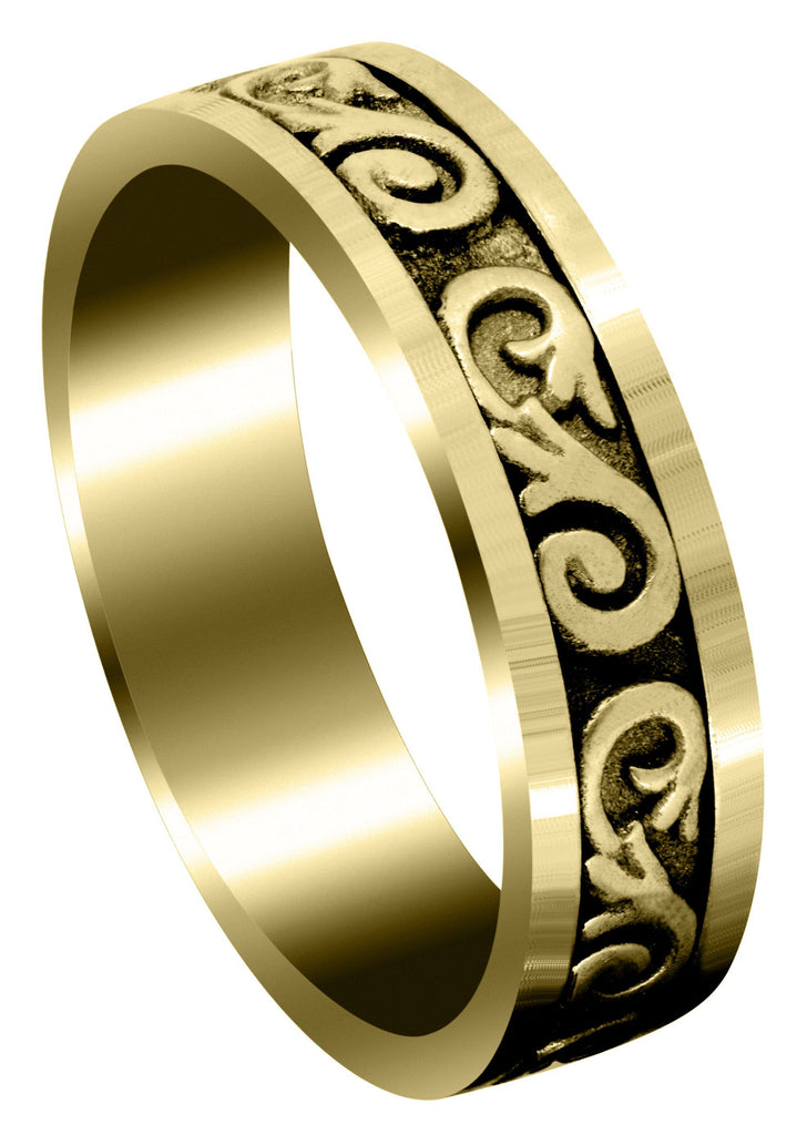 Yellow Gold Celtic Unique Mens Wedding Band | Sand Blast / High Polish Finish (Elliot)