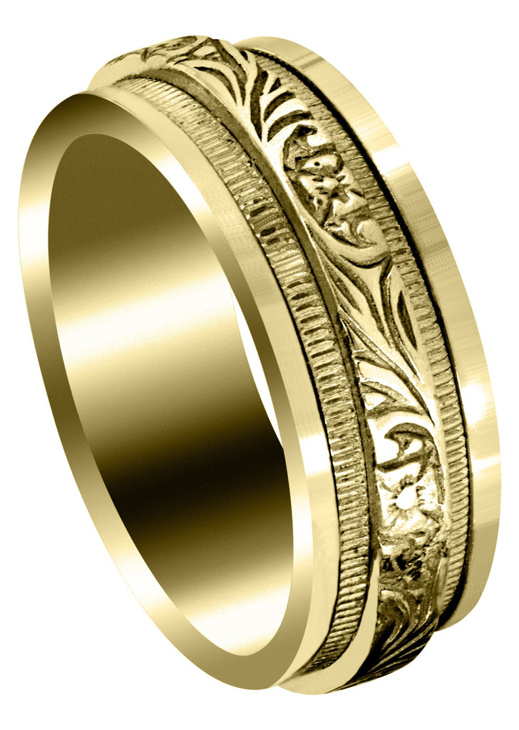 Antique Unique Mens Wedding Band | High Polish Finish (Jake)
