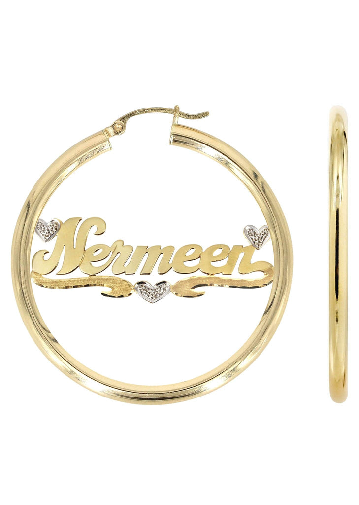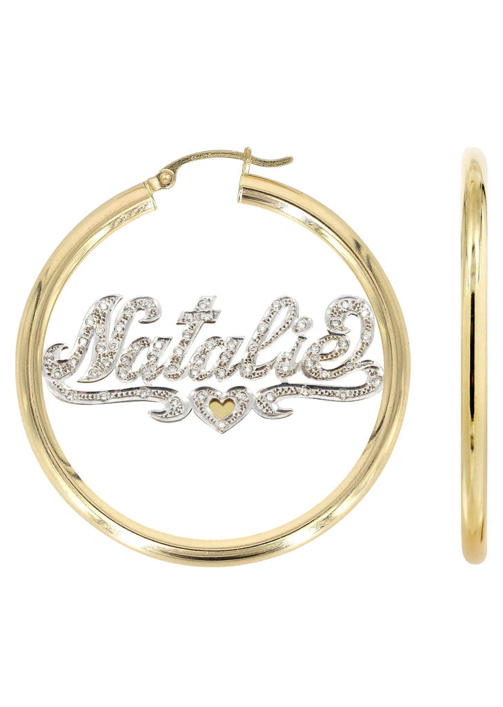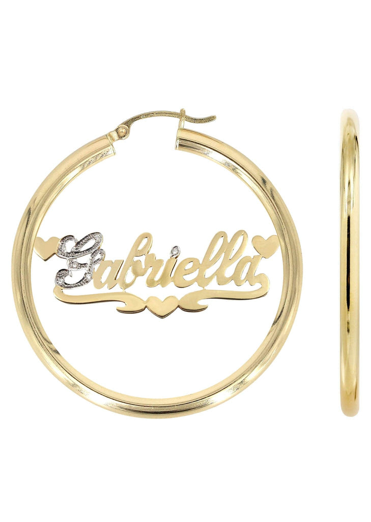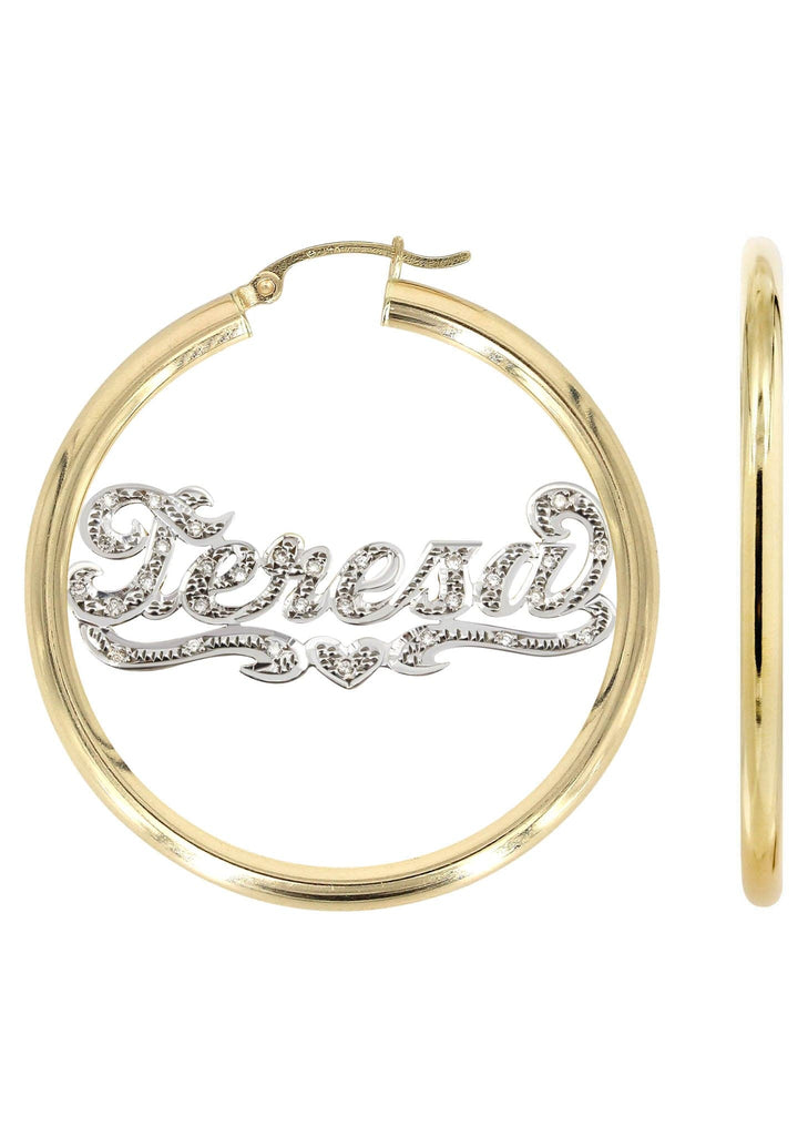 14K Ladies Two Tone Diamond Cut with Diamonds Name Plate Hoop Earrings
