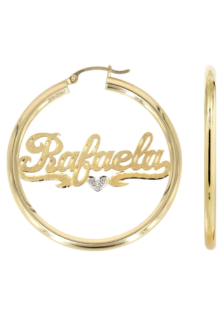14K Ladies Diamond Cut Heart Name Plate Hoop Earrings