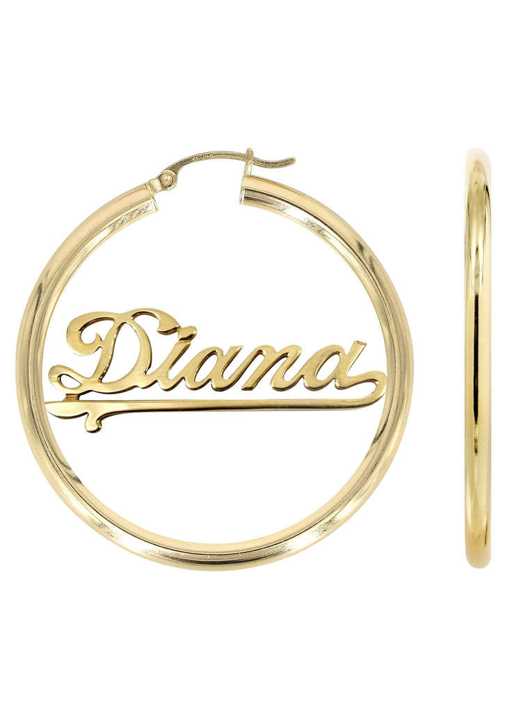 14K Ladies Diamond Cut Name Plate Hoop Earrings