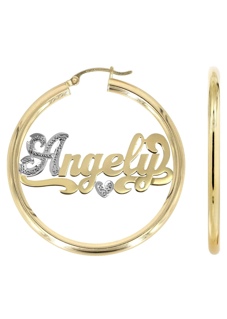 14K Ladies Two Tone Diamond Cut Name Plate Hoop Earrings