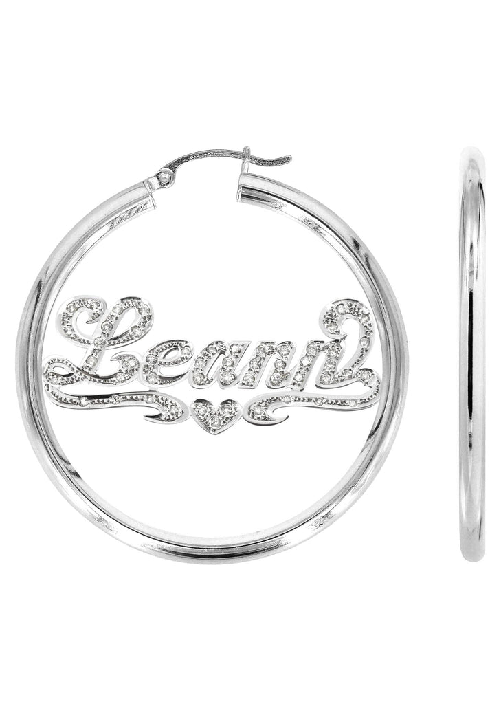 14K Ladies White Gold with Diamonds Name Plate Hoop Earrings