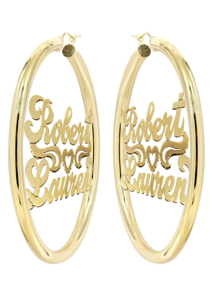 14K Ladies Couple Names Name Plate Hoop Earrings