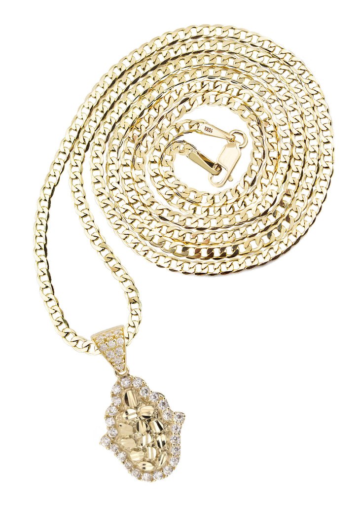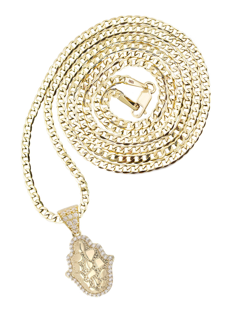 10K Yellow Gold Hamsa Hand Nugget Necklace | Appx. 1.4 - 5.4 Grams