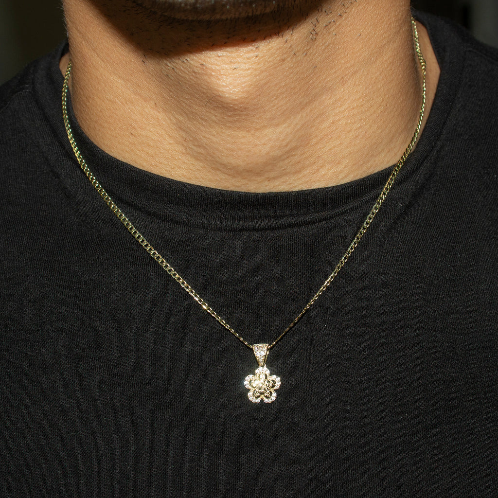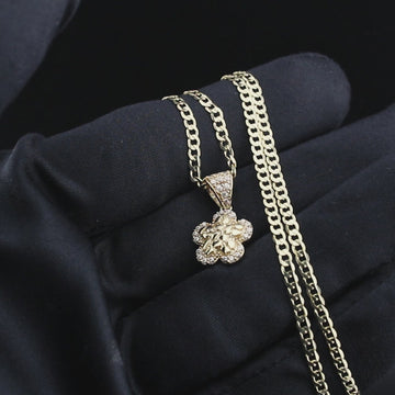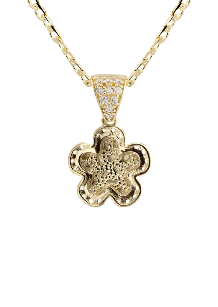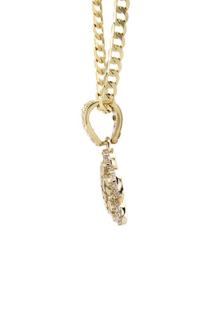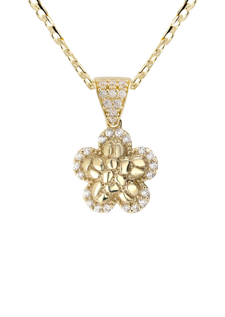 10K Yellow Gold Nugget Necklace Encrusted With Cubic Zirconia Crystals With An Approximate Total Gram Weight Of 5.4. Pendant Weighs 1.4 Grams And The Chain Weighs 4 Grams. The Pendant Measurement Is 0.5 inches In Width And A Length Of 0.8 inches. The Length And Type Of The Chain Can Be Adjusted Or Select The No Chain Option.
