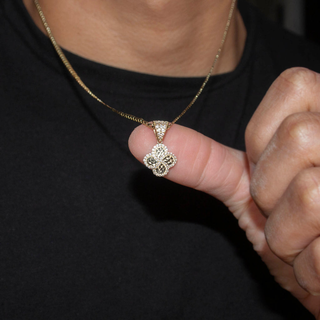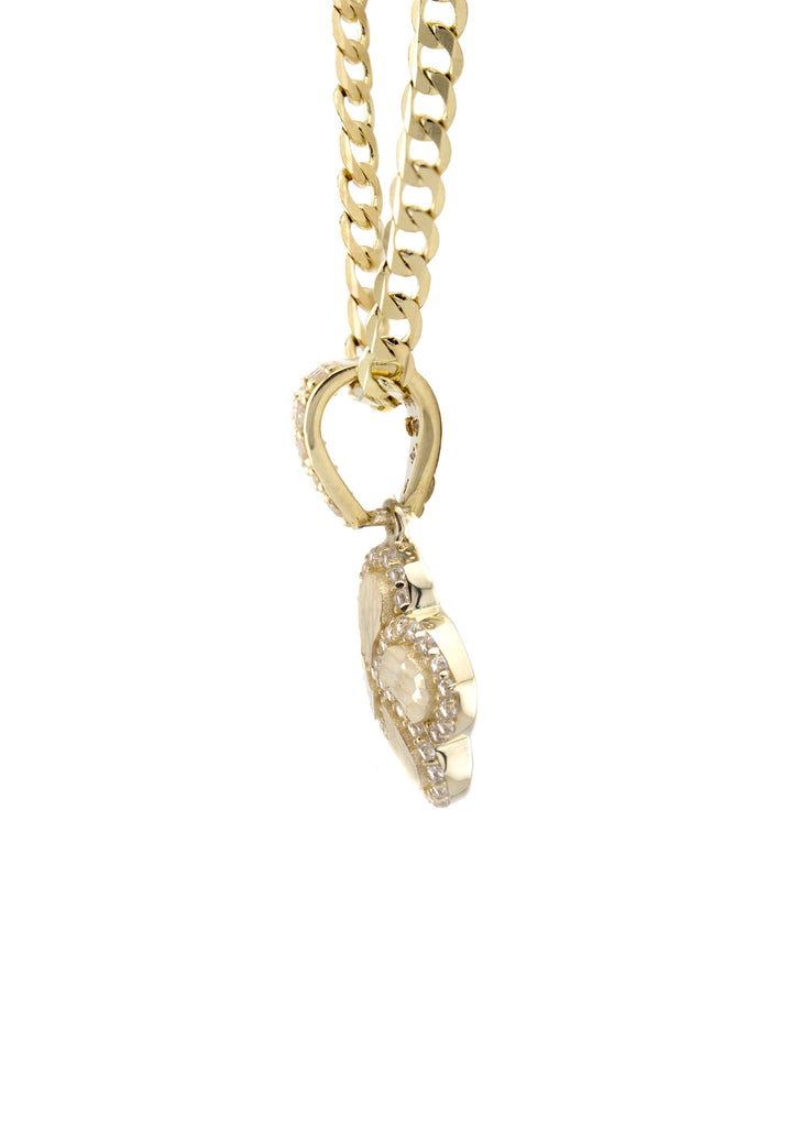 10K Yellow Gold Nugget Necklace Encrusted With Cubic Zirconia Crystals With An Approximate Total Gram Weight Of 5.5. Pendant Weighs 1.5 Grams And The Chain Weighs 4 Grams. The Pendant Measurement Is 0.5 inches In Width And A Length Of 0.9 inches. The Length And Type Of The Chain Can Be Adjusted Or Select The No Chain Option.