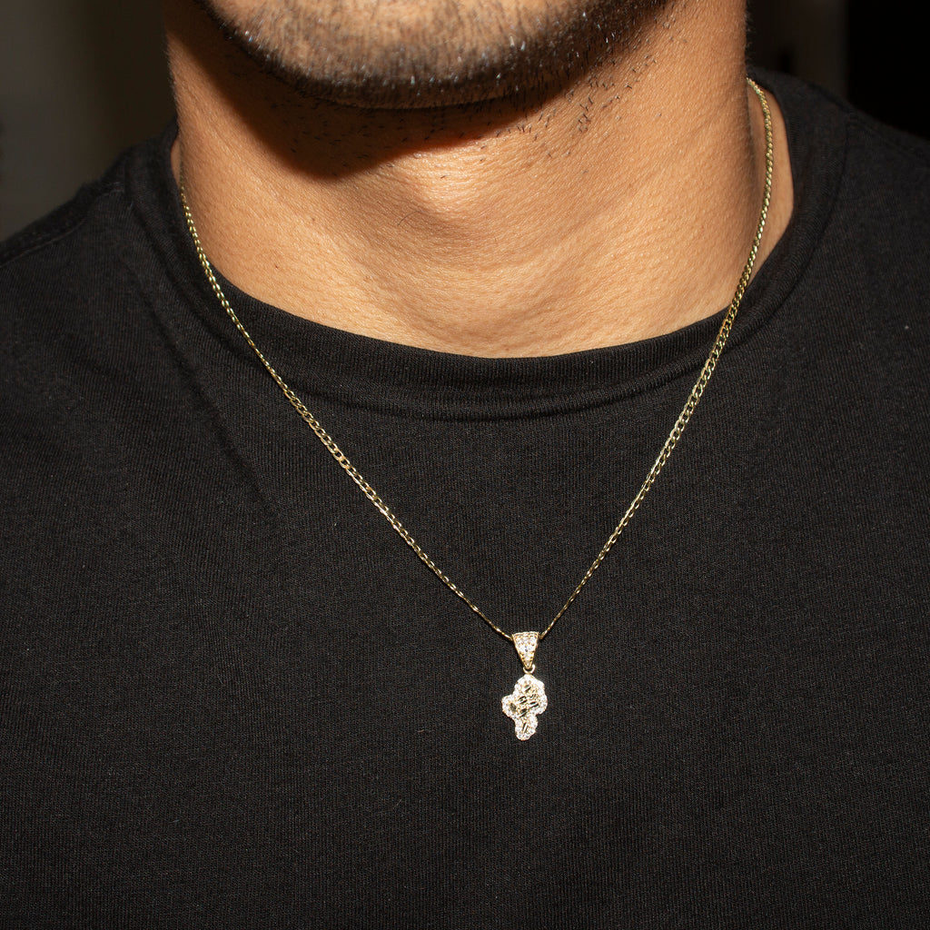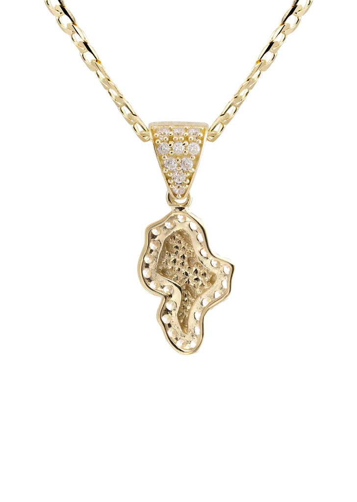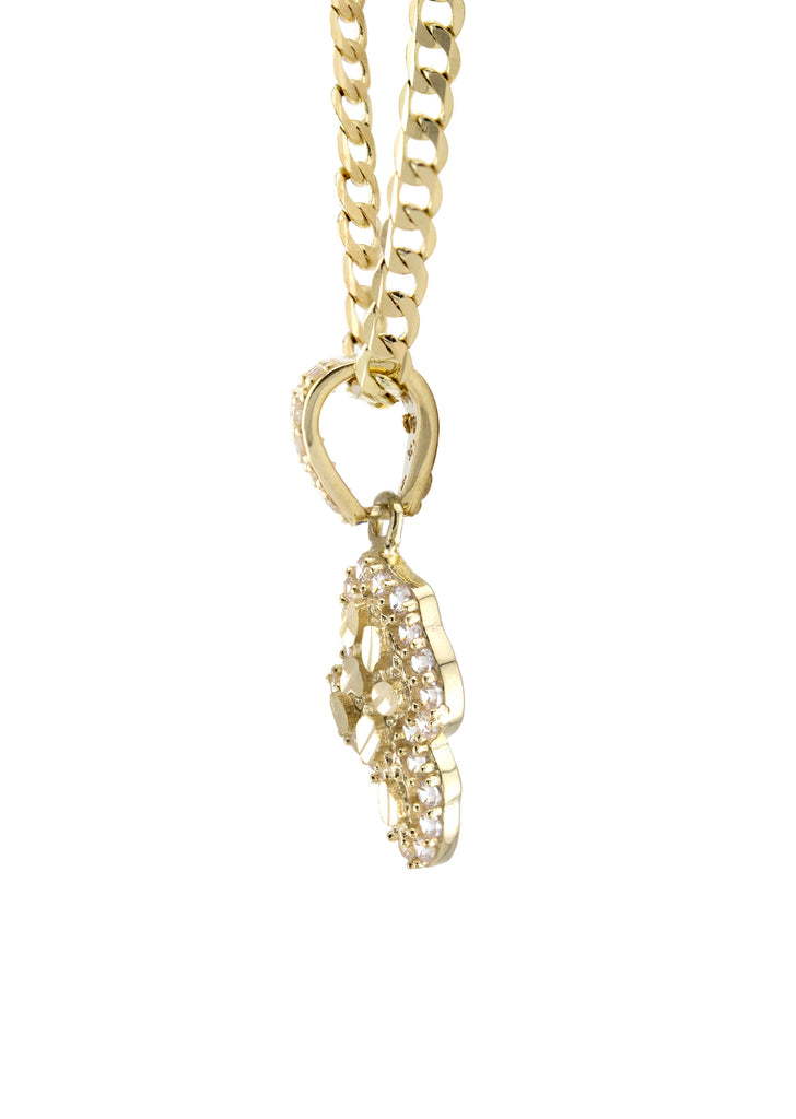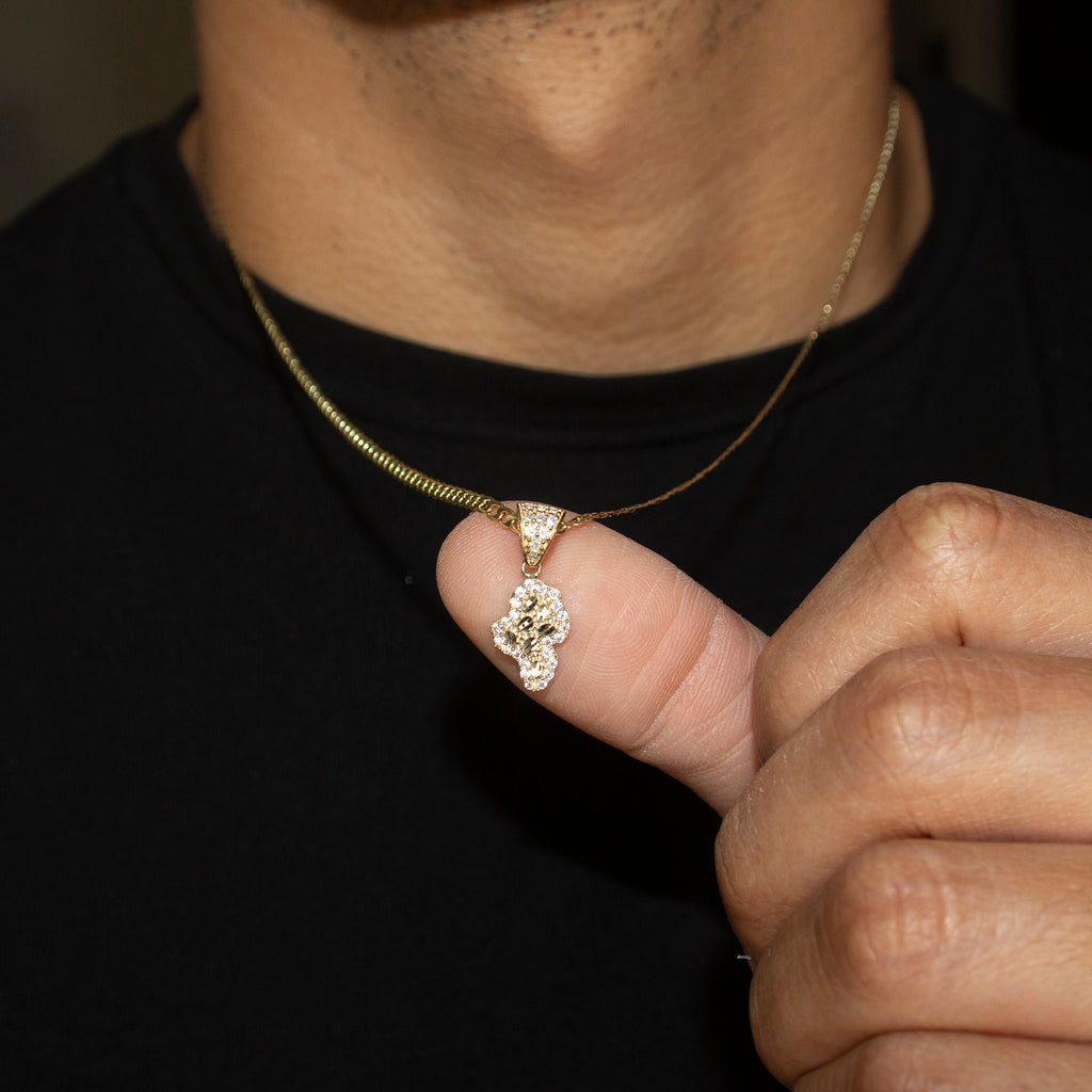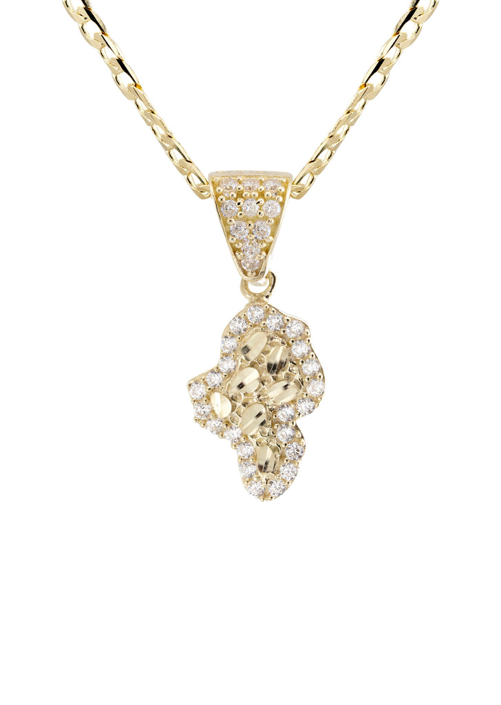 10K Yellow Gold Nugget Necklace Encrusted With Cubic Zirconia Crystals With An Approximate Total Gram Weight Of 5. Pendant Weighs 1 Grams And The Chain Weighs 4 Grams. The Pendant Measurement Is 0.3 inches In Width And A Length Of 0.8 inches. The Length And Type Of The Chain Can Be Adjusted Or Select The No Chain Option.