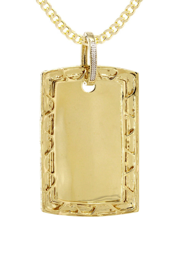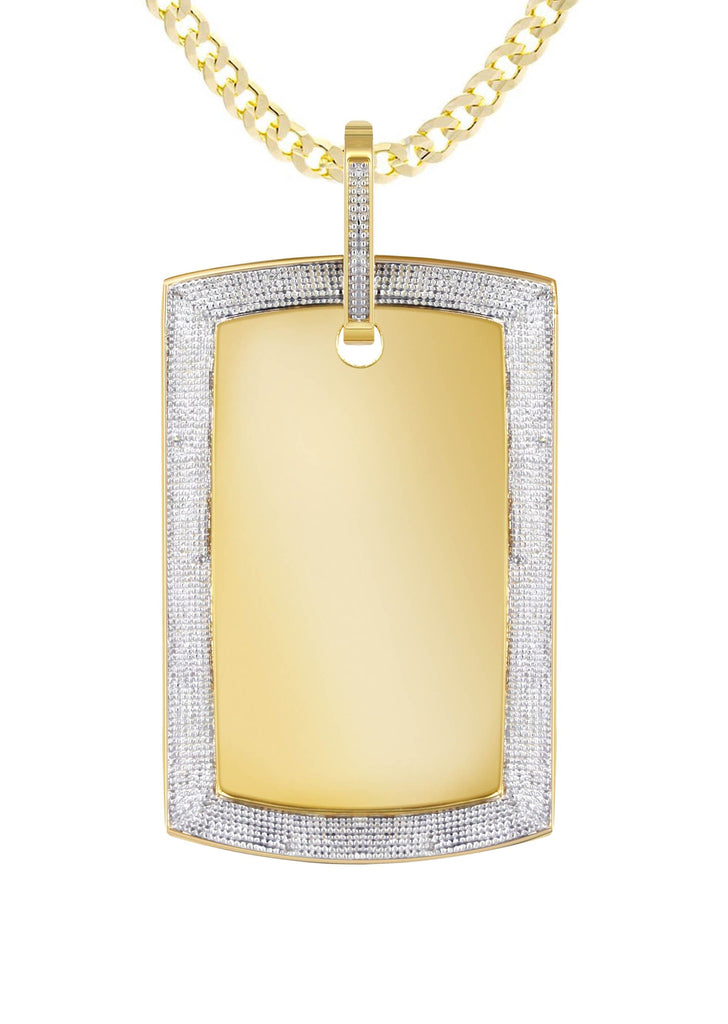 10K Yellow Gold Diamond Picture Pendant Necklace which comes in 2.7 Inches in length and 1.48 Inches in width. The chain options include a 10K gold Cuban chain, Franco or Rope with a width of 3 MM and the length can be selected to any preference. Total Gram Weight Is 36. Pendant weighs 26 grams and the chain weighs approximately 10 Grams. Upon placing order, we will contact you for a picture to put on the pendant. Due to the custom nature of this product, please allow up to 1 week for production. |