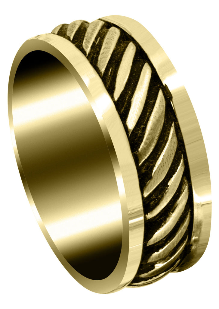 Yellow Gold Fancy Carved Contemporary Mens Wedding Band | GB / High Polish Finish (John)