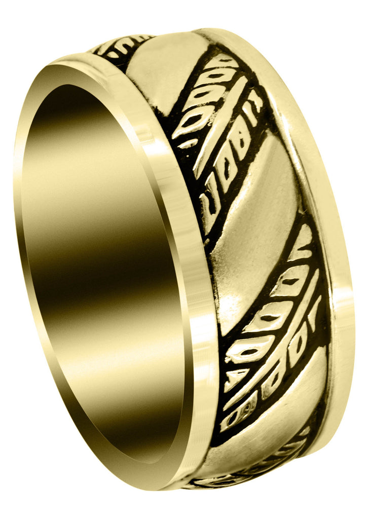 Yellow Gold Fancy Carved Contemporary Mens Wedding Band | High Polish Finish (Hunter)