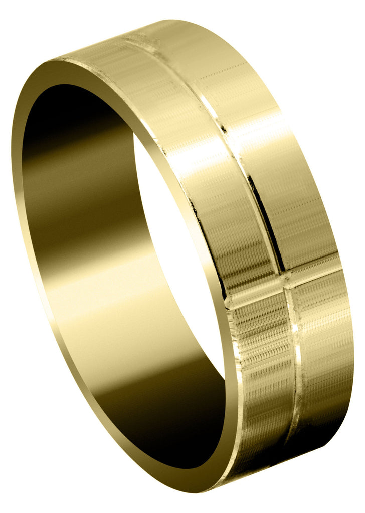 Yellow Gold Carved Simple Mens Wedding Band | High Polish Finish (Michael)