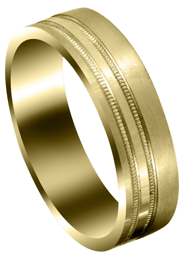 Yellow Gold Carved Simple Mens Wedding Band | Satin Finish (Joseph)